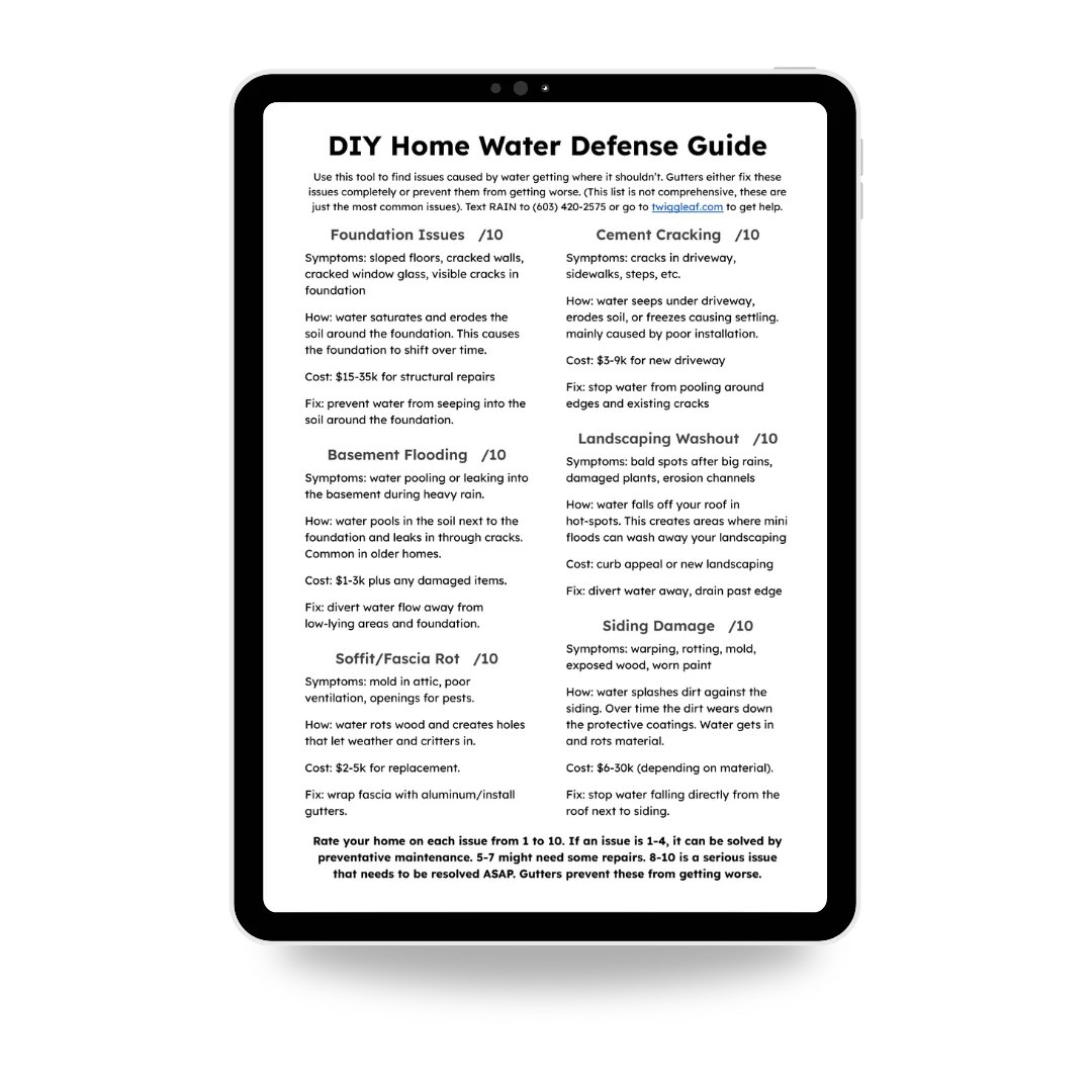 This tool gives you decades of experience on one page. Get an assessment of how your home handles water in 10 minutes. After using this guide you will feel confident on if you have any issues or not.