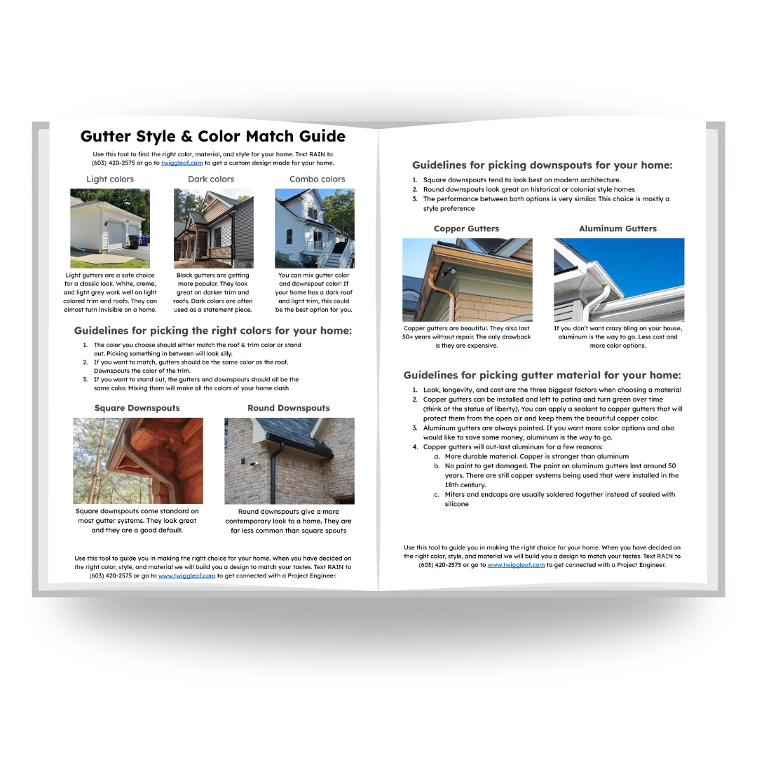 Hundreds of gutter installs and their styles condensed into one guide. If you are worried about your gutter system not looking good... this is for you. Learn how to match the color of your siding, trim, roof, and more to your new gutter system.